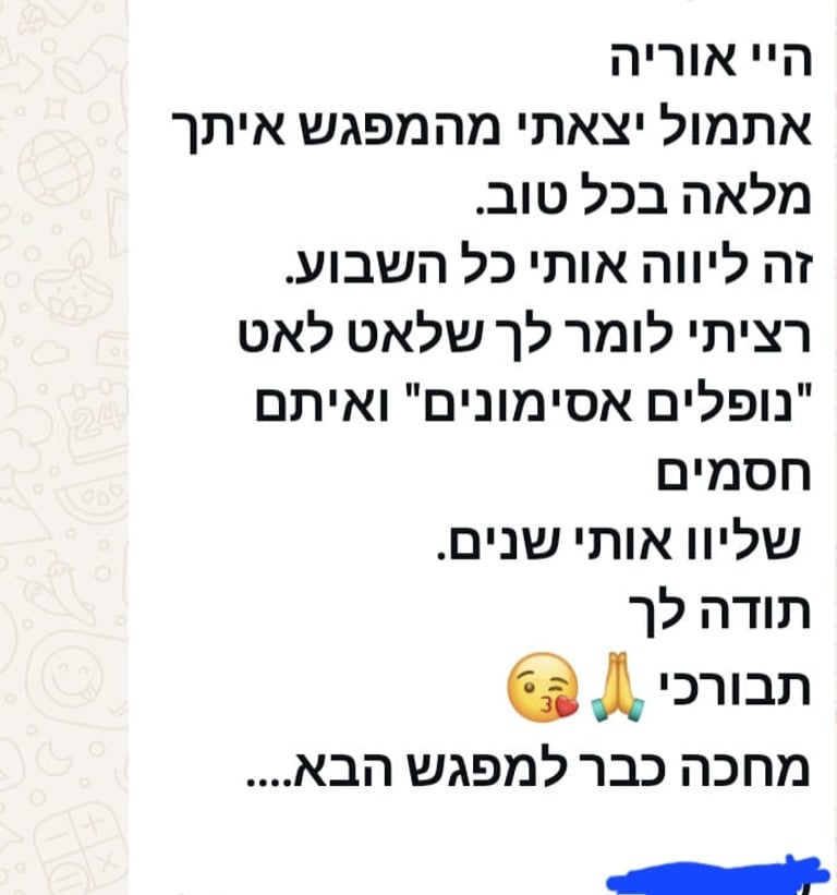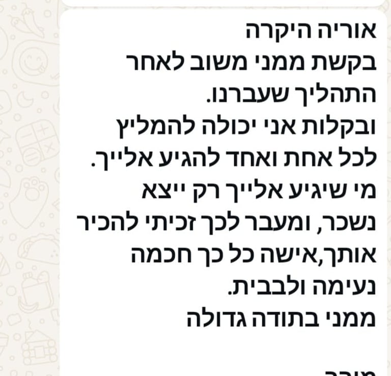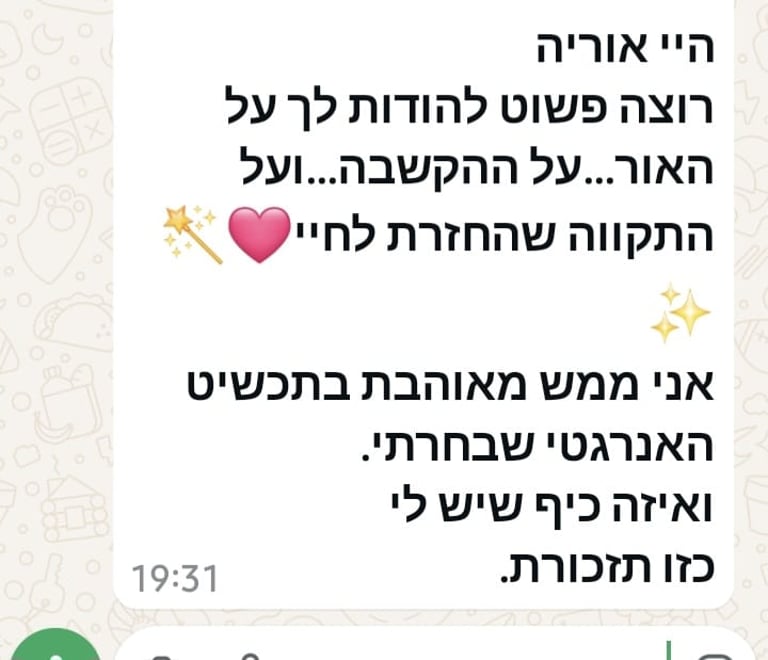 ✓ תהליך עומק: ליווי רגשי, אימוני וכלים מעשיים ליצירת שינוי בחייך.